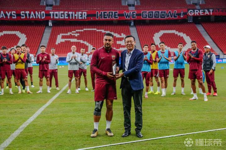 训练启动前,海港俱乐部党总支书记兼总经理沙良昌,分别为莱昂纳多颁发了中超联赛第25轮最佳球员奖,为李帅颁发了百场纪念球衣。